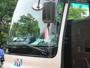 バスの乗り口には、皆さんが間違えないように、ピンクのサカナさんがぶら下がっています!
